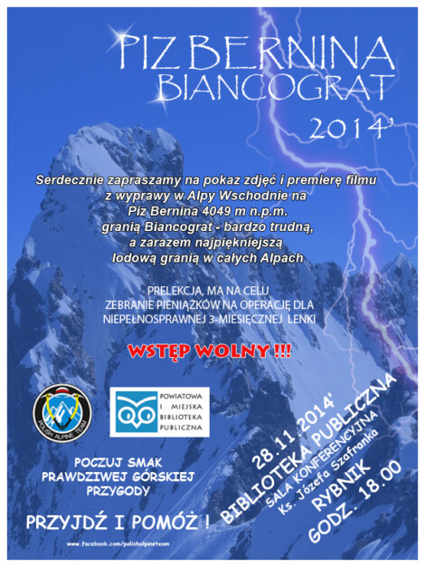NAZWA – Piz Bernina 2014′MIEJSCE – Miejska Biblioteka Publiczna ADRES